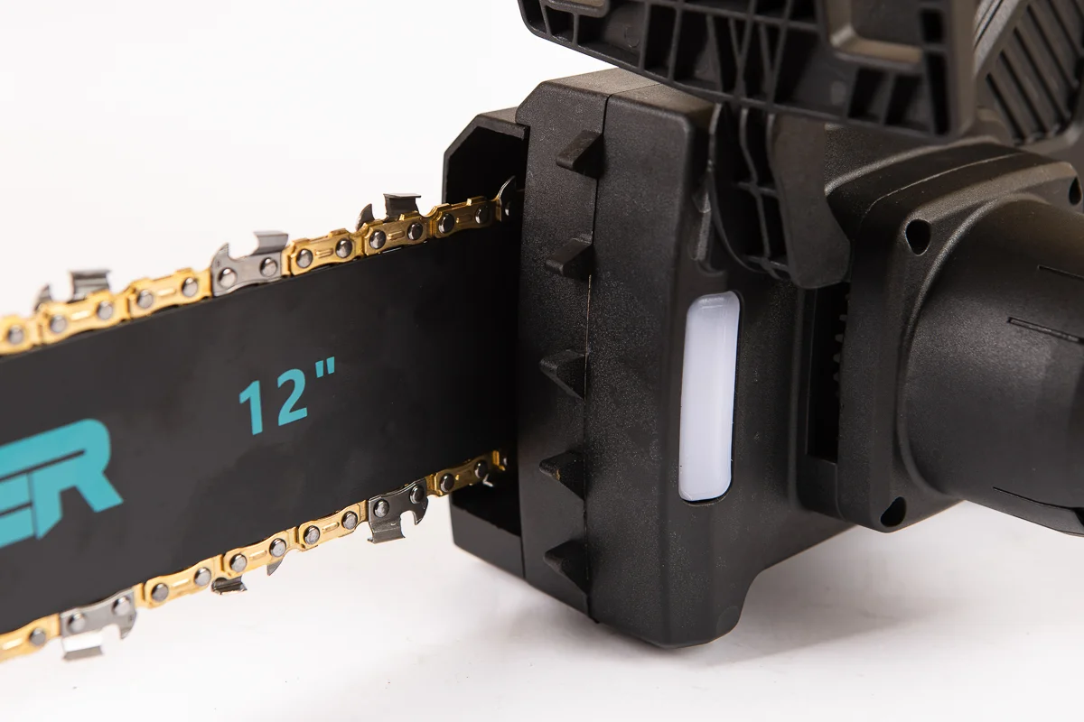 Модель має довжину шини 12″ (305 мм) і ланцюг 3/8″ на 45 ланок, що дозволяє виконувати чисті та рівні пропили деревини середньої товщини.