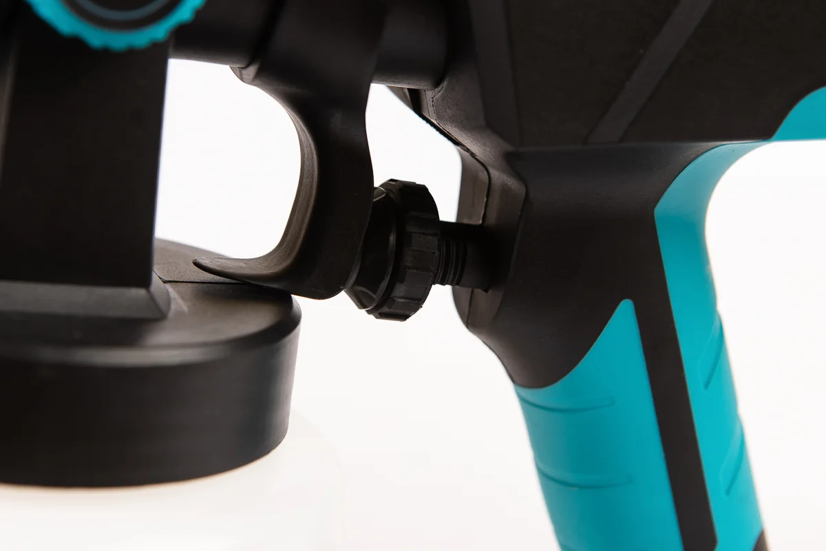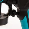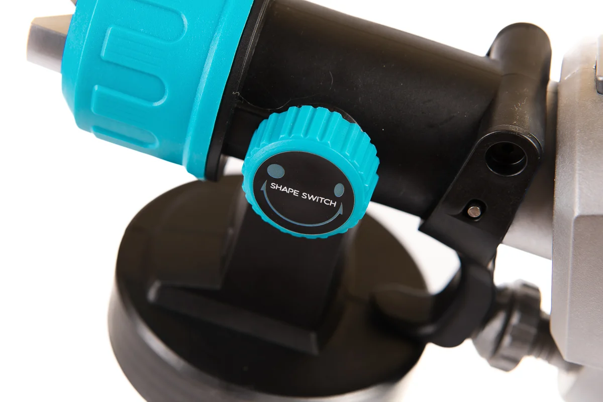 Фарбопульт має швидкість обертання без навантаження 41 000 об/хв і повітряний потік 1200 мл/хв, що дозволяє рівномірно наносити покриття на поверхню. Діапазон відстані розпилення 20–50 см і об’єм ємності для фарби 1000 мл забезпечують зручність і ефективність при роботі на різних площах.