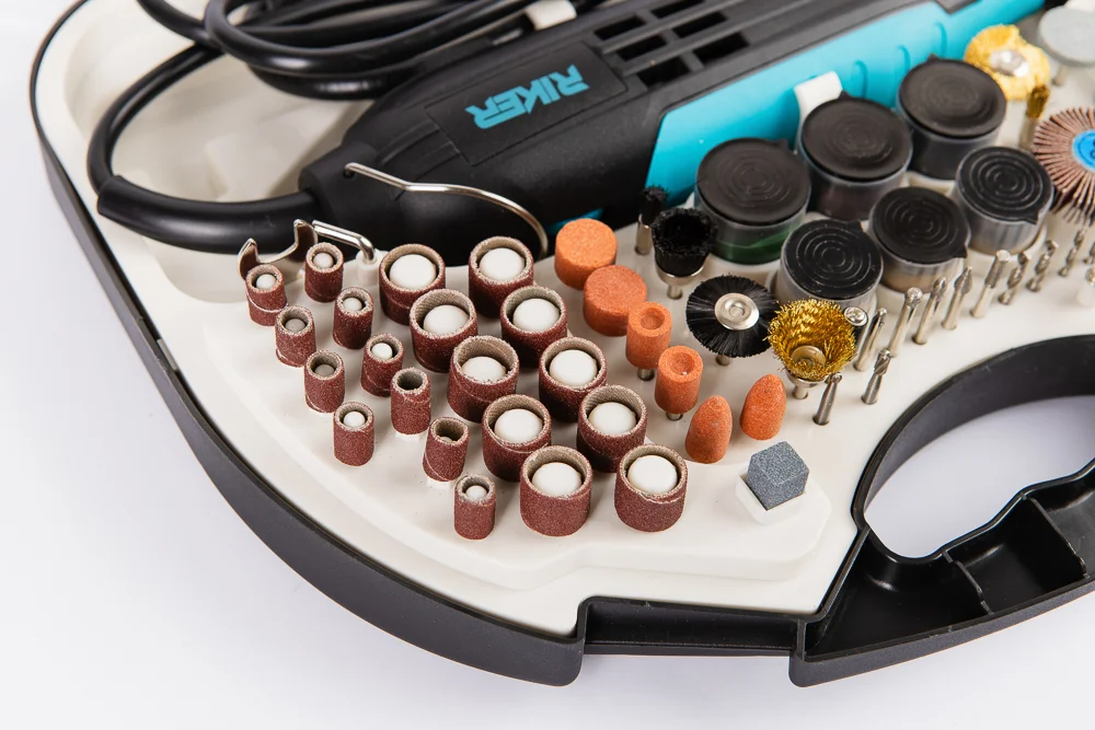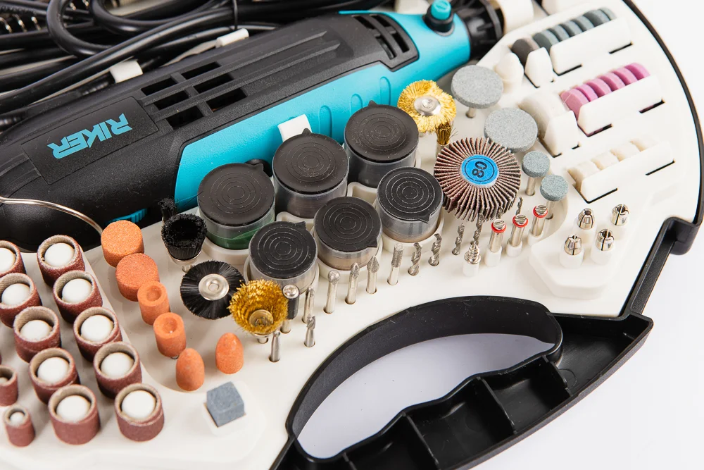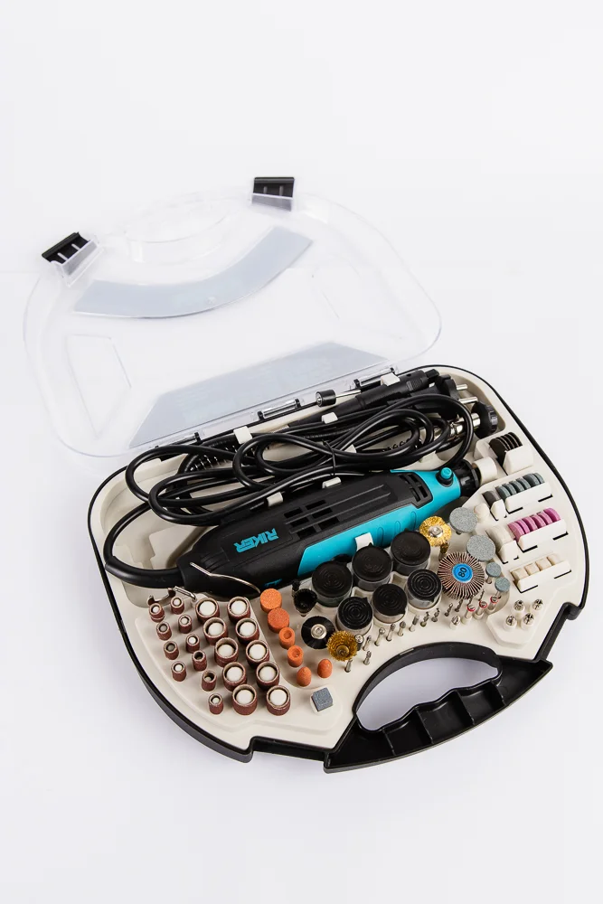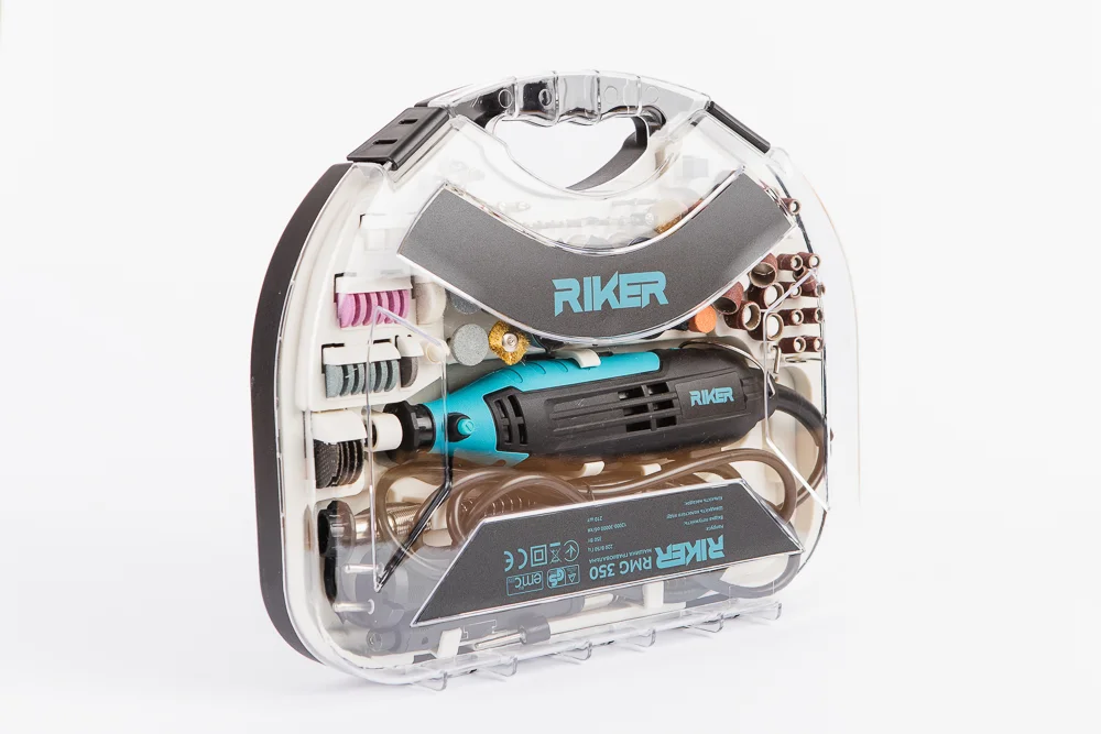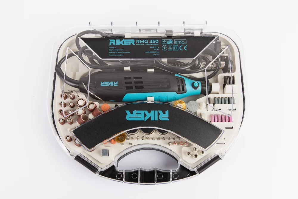 Гравіювальна машина RIKER RMG 350 — універсальний інструмент для шліфування, різання, полірування, гравіювання та дрібних слюсарних робіт. Потужний двигун на 350 Вт забезпечує стабільну роботу навіть під навантаженням, а широкий діапазон обертів дозволяє точно підібрати режим під будь-яке завдання.
